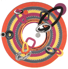 | Zones & Codes - painted welt 92" diameter October 1999 | Tomorrow is a Promise to No One - painted welt 93" diameter May 1999 SOLD | Present tense - painted welt 86.5" x 81" x 7" May 23, 2001 | ||||||||||||||